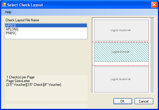 will be prompted to select a check paper layout that corresponds with the check