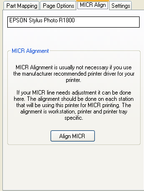 MICR alignment is usually not necessary if you have installed and choose the driver designed for your printer. This printer must be selected as a member of the Check Factory Destination group. You always print to the 'Check Factory VS' printer from within your accounting software.
